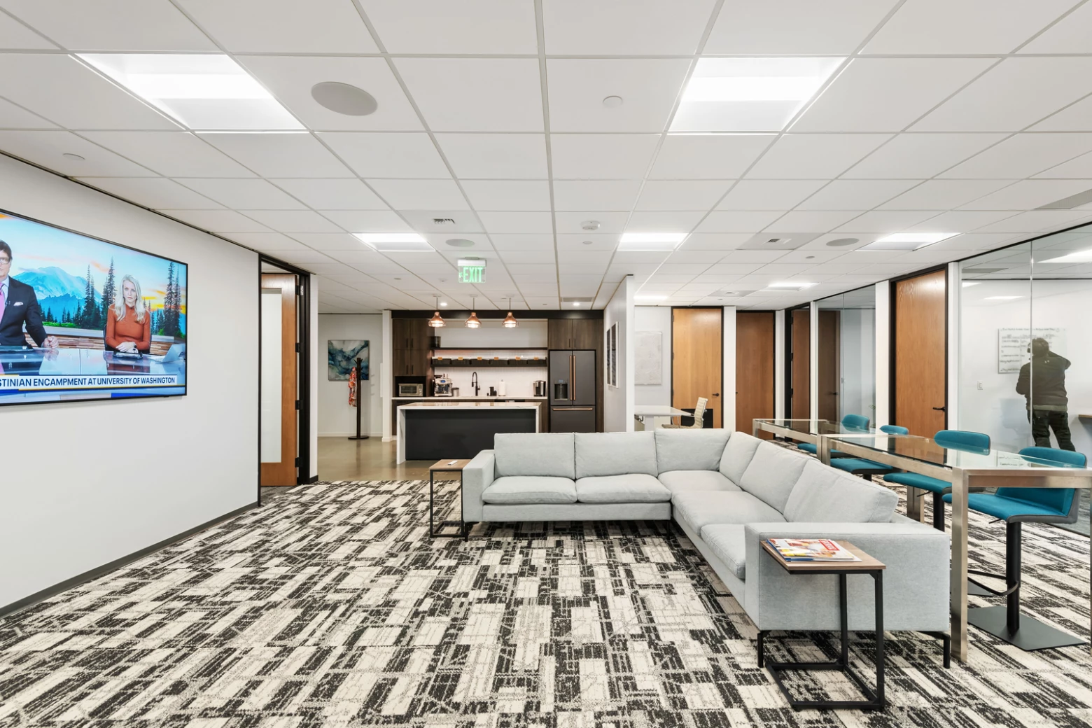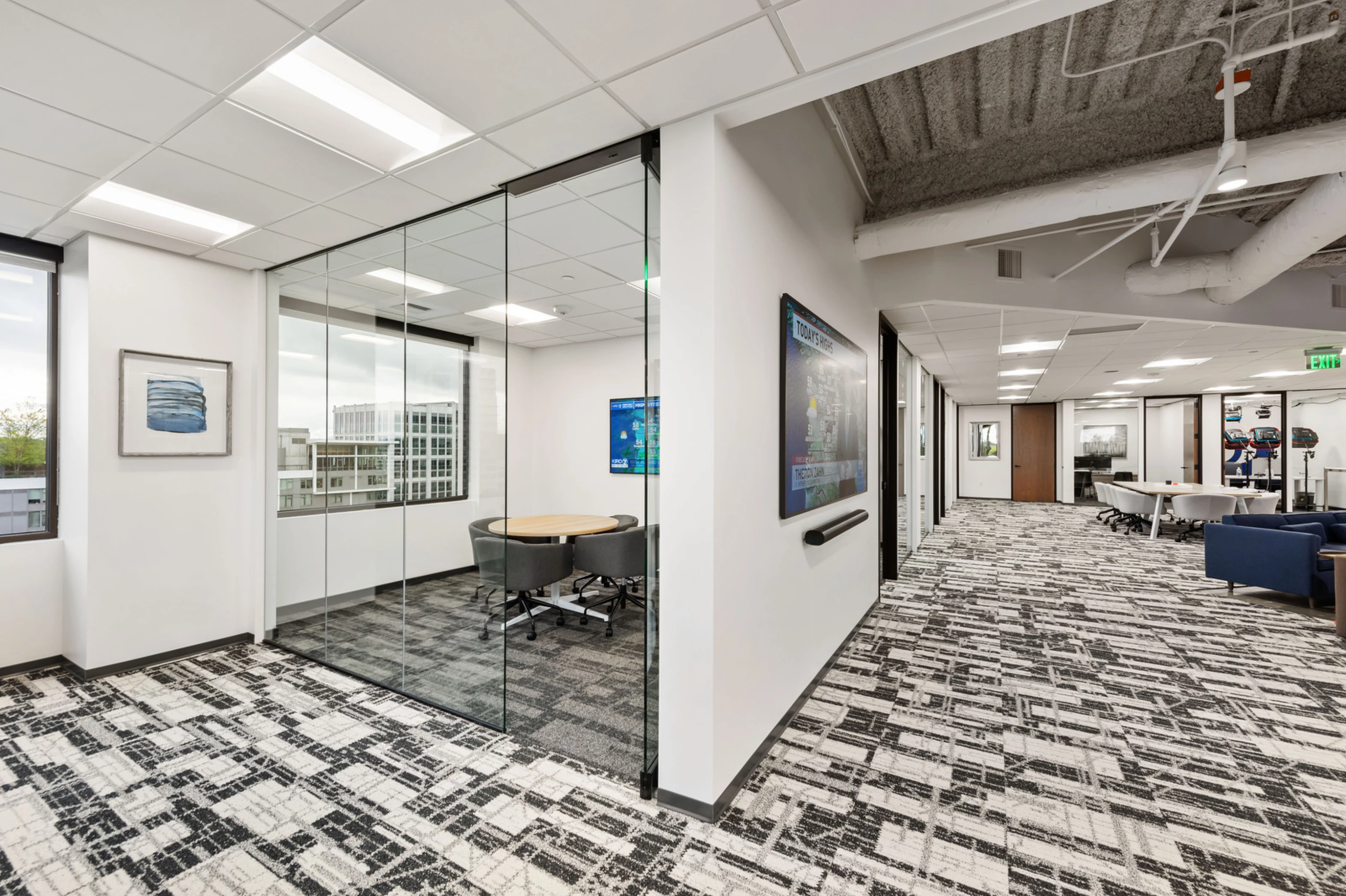 - Open-Concept Layout – A flexible workspace combining collaborative zones, private offices, and lounge areas.